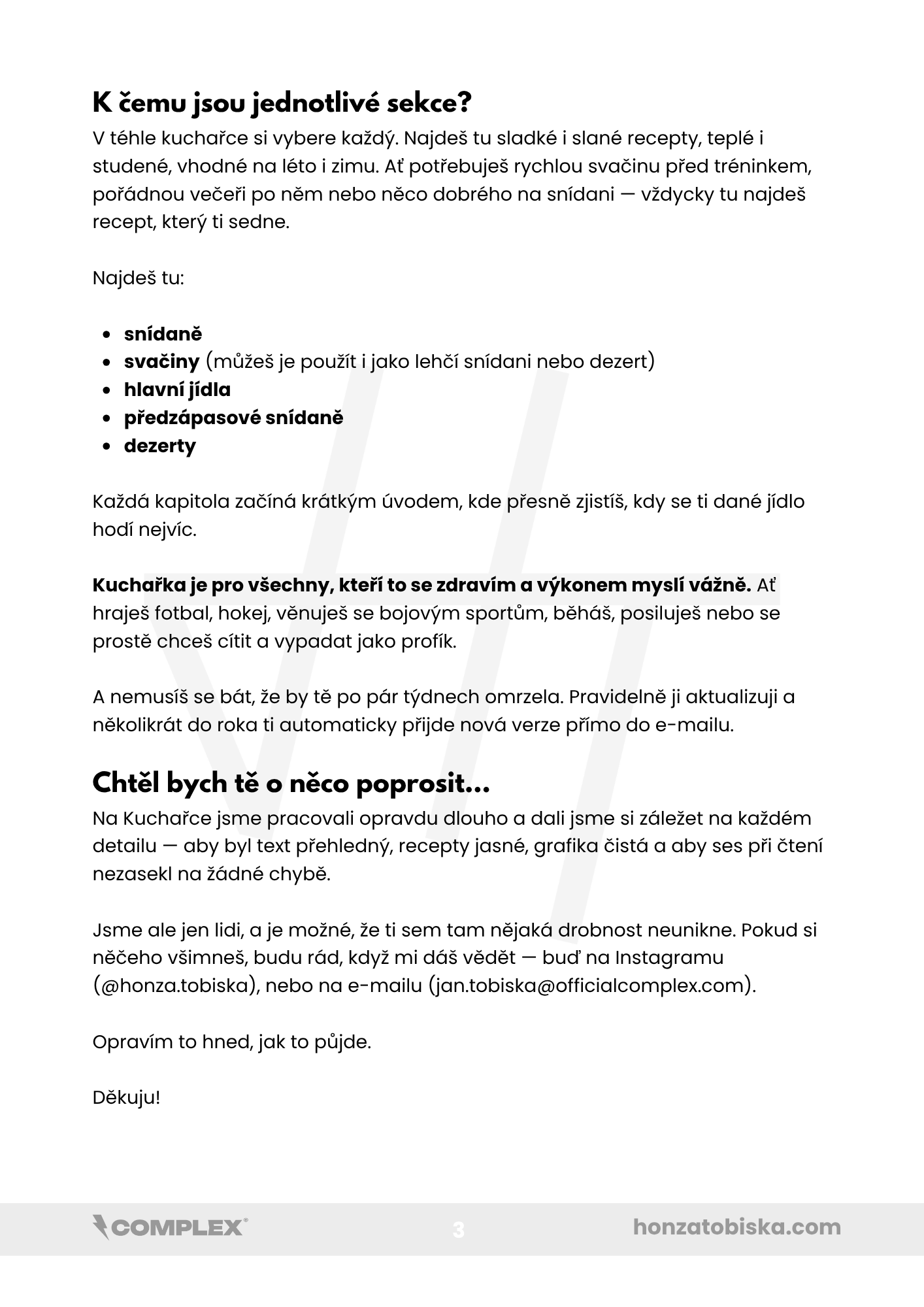 Ať už děláš fotbal, hokej, florbal, kulturistiku, bojové sporty nebo běháš dlouhé tratě, tahle kuchařka ti dá přesně to, co potřebuješ – jídla, která podporují tvůj výkon, ale nezaberou ti hodiny času v kuchyni.